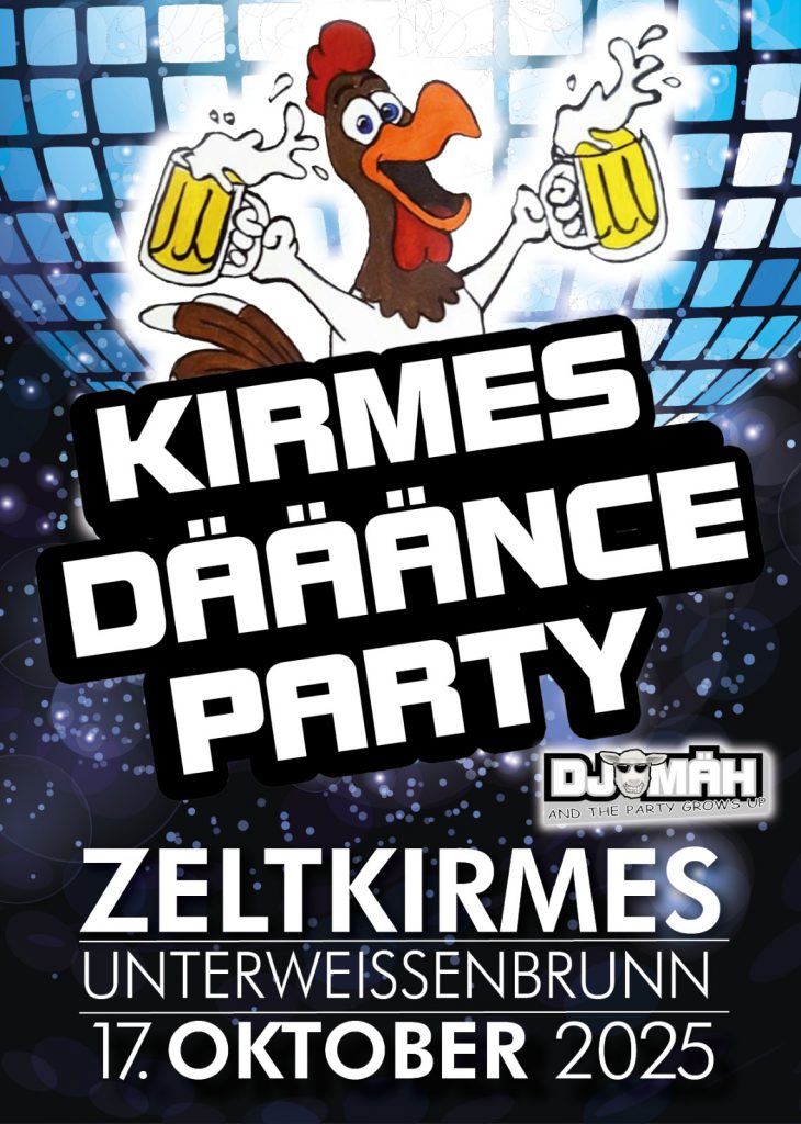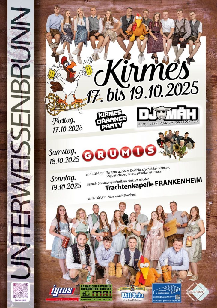 Das 33. Unterweißenbrunner Kirmeswochenende findet vom 17.10.2025 – 19.10.2025 am Sportplatz in Unterweißenbrunn statt! Wir wollen natürlich wieder richtig mit euch feiern!